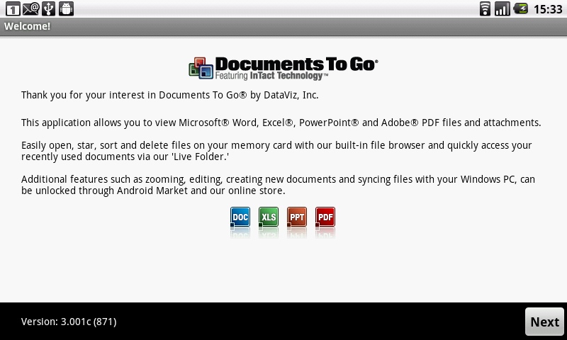 A közönséges irodai alkalmazások feladatát pedig régi jó ismerősünk, a Documents to Go nevű programcsomag látja el – ez a Microsoft Office által készített dokumentumok és PDF állományos megnézésre való, illetve a teljes verzió megvásárlása után az Office fájlok szerkesztésére is használható.