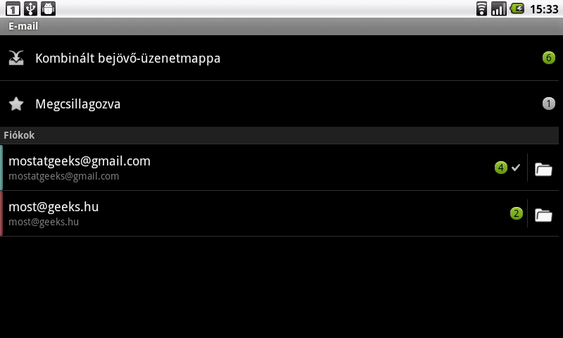 Levelezőkliensből kettőt kapunk: a Gmailhez tartozó a szokásos funkciókkal rendelkezik, míg a másikkal POP3, IMAP és Exchange fiókokhoz is kapcsolódhatunk (egyszerre többhöz is, és ezeket egy kombinált nézetben is megjeleníthetjük). A letöltési opciók testre szabhatósága átlagos – gyakoriságot igen, de például méretet vagy napokat nem adhatunk meg.