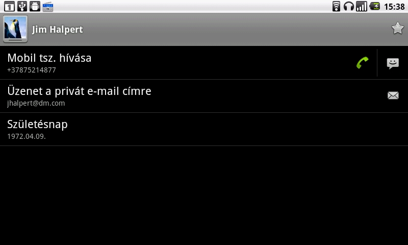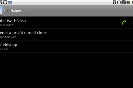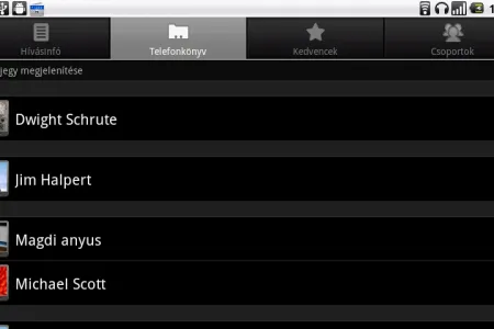 A névjegyek száma korlátlan, és mindegyikhez számtalan információt vehetünk fel, ám a komolyabb készülékekkel ellentétben itt nincs lehetőség a Facebook, Picasa és más accountokkal való összekapcsolásra, ebből a szempontból tehát a gyári névjegykezelő meglehetősen szegényes hatást kelt. Szerencsére a Gmail és Exchange szervert kihasználó szinkronizáció azért rendelkezésre áll.
