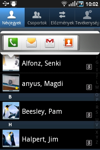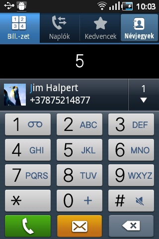 Ami magát a beszélgetést illeti, ezzel nem volt problémánk, a készülék hangereje és vételi képességei jók. A többi androidos készülékhez hasonlóan a beírt betűkből a ténylegesen hívni kívánt ismerőst kitaláló Smart dial is rendelkezésre áll, telefonáláshoz így nem muszáj megnyitnunk a névjegyeket kezelő alkalmazást.