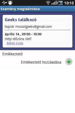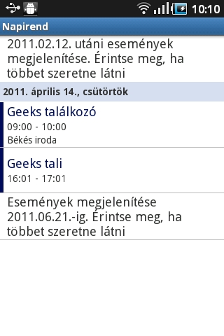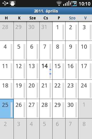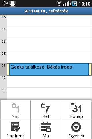 A teendők nyilvántartására a Galaxy Ace tökéletesen megfelelő. A naptár rész a megszokott funkciókkal rendelkezik, a Menü segítségével előhívható gombokkal villámgyorsan válthatunk a havi, heti és napi bontás között, ezek mellett pedig egy áttekintő, csak az események listáját mutató nézet is rendelkezésre áll.