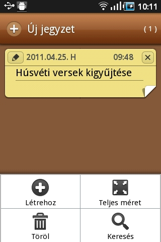 Gyors jegyzetek készítésére a Jegyzet nevű alkalmazás használható, ami aranyos grafikával mutatja például a teendőket vagy a bevásárló listát. Az elmentett jegyzeteket levélben, Bluetoothon vagy SMS-ben is továbbküldhetjük ismerőseinknek.