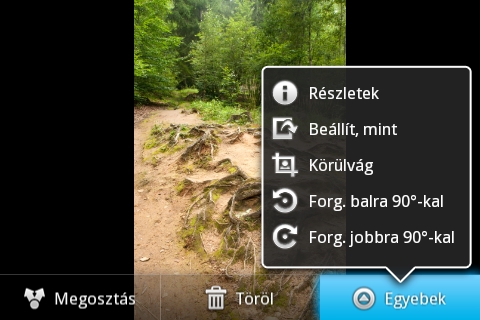 Fotógalériából az alap androidos verziót találjuk a telefonon, ami a képeket albumokba sorolva mutatja meg. Az egyes albumokat megnyitva négyzethálós vagy dátum szerint csoportosított nézetet kapunk, amelyben jobbra-balra lapozgathatunk. Ügyes 3D-s trükk, hogy az album végét elérve a képek „bedőlnek”. Az egyes fotók esetében lehetőségünk van megosztásra, törlésre és pár alapszintű szerkesztésre (forgatás, vágás) is.