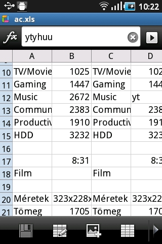 Található az alkalmazások között egy egyszerű fájlszerkesztő is, ami nagy segítség azoknak, akik nem akarnak a Marketen az ismeretlen programok között kutakodni. Ezzel a szoftverrel a beépített flashmemórián és a microSD kártyán az alapvető műveleteket mind elvégezhetjük.