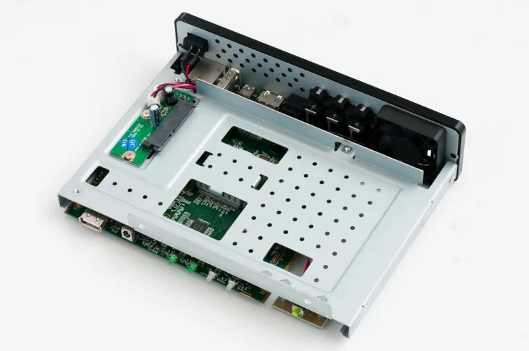 Ha a készülék minden képességét ki szeretnénk használni, akkor szükségünk lesz egy HDD beszerelésére is, de egyébként a lejátszó tökéletesen működik „üresen” is. Merevlemezből 2,5 és 3,5”-os változatokat egyaránt használhatunk, a lényeg a SATA port. Az összeszerelés elég egyszerű: először ki kell csavaroznunk a hátoldal két szélén található két csavart, majd kihúznunk a készülék hardverét a burkolatból. A HDD-t egyszerűen csak be kell csúsztatnunk a felül található sínbe, rögzíteni két csavarral, és már szerelhetjük is össze a lejátszót.