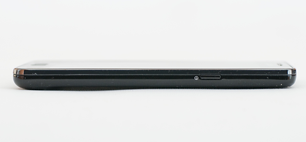 De lépjünk most túl ezen a problémán, és nézzük tovább a külalakot! Ahhoz képest, hogy egy 4,3”-os képernyőjű mobilról van szó, a telefon kis méretű, köszönhetően a vékony kereteknek. Kézbe fogva leginkább a 8,5 mm-es vastagság tűnik fel (a teljes méretek: 125×66×8,5 mm). Az alapvetően műanyag kivitelnek köszönhetően a tömeg is meglepően alacsony, mindössze 116 gramm, ami azért a kijelzőt figyelembe véve elég jó érték.