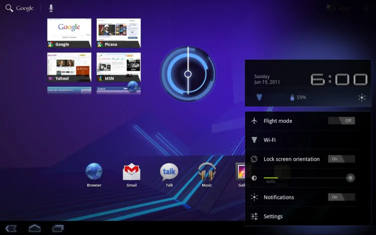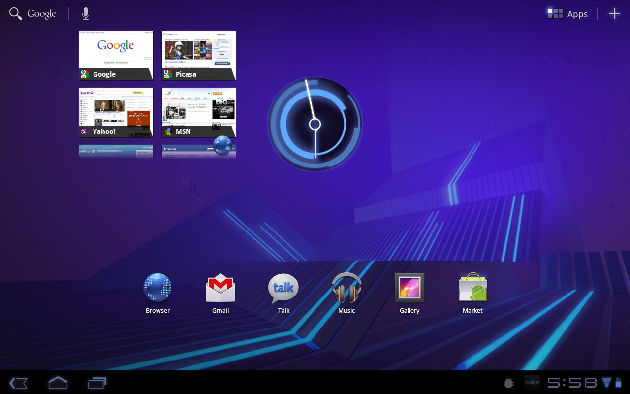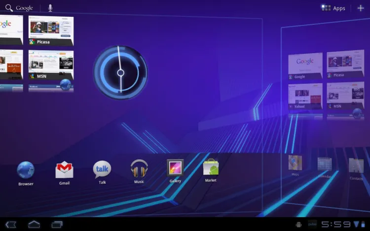 Ezzel a felülettel a Google kifejezetten a táblagépeket célozza meg, tehát egészen más kinézetet kapunk, mint amit a telefonoknál megszoktunk (ebben eltérő az Apple filozófiája, hiszen az iPad felülete olyan, mint egy nagyobbra nőtt iPhone-é). Persze azért vannak hasonló szolgáltatások: kezdőképernyőből itt is több, öt darab, áll rendelkezésre, amelyekre widgeteket és programikonokat pakolhatunk ki.
