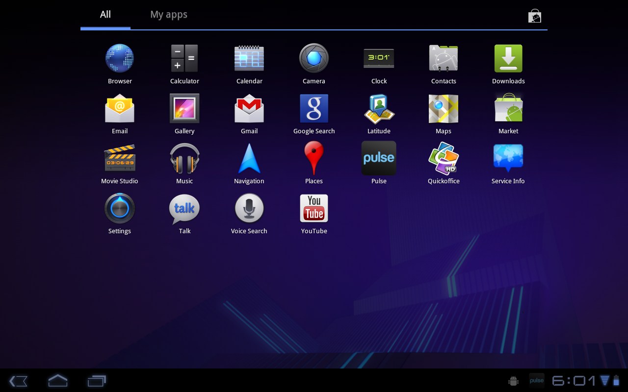 A telepített programok listáját a képernyő jobb felső sarkában található Apps gomb megnyomásával hívhatjuk elő. Ez a lista két részre van osztva, az All értelemszerűen valamennyi telepített programot tartalmazza, míg a My Apps alatt az általunk letöltött és telepített szoftvereket találjuk meg. Ha egy alkalmazás ikonját nyomva tartjuk, akkor alul megjelennek a kezdőképernyők stilizált ikonjai, erre pedig ráhúzhatjuk a kérdéses ikont – így nagyon egyszerűen lehet a sokat használt alkalmazásokat elérhetővé tenni.