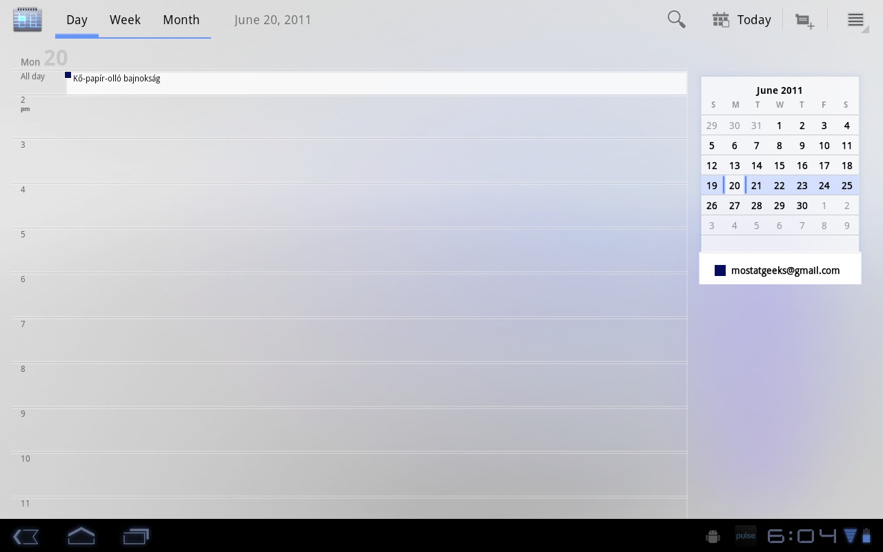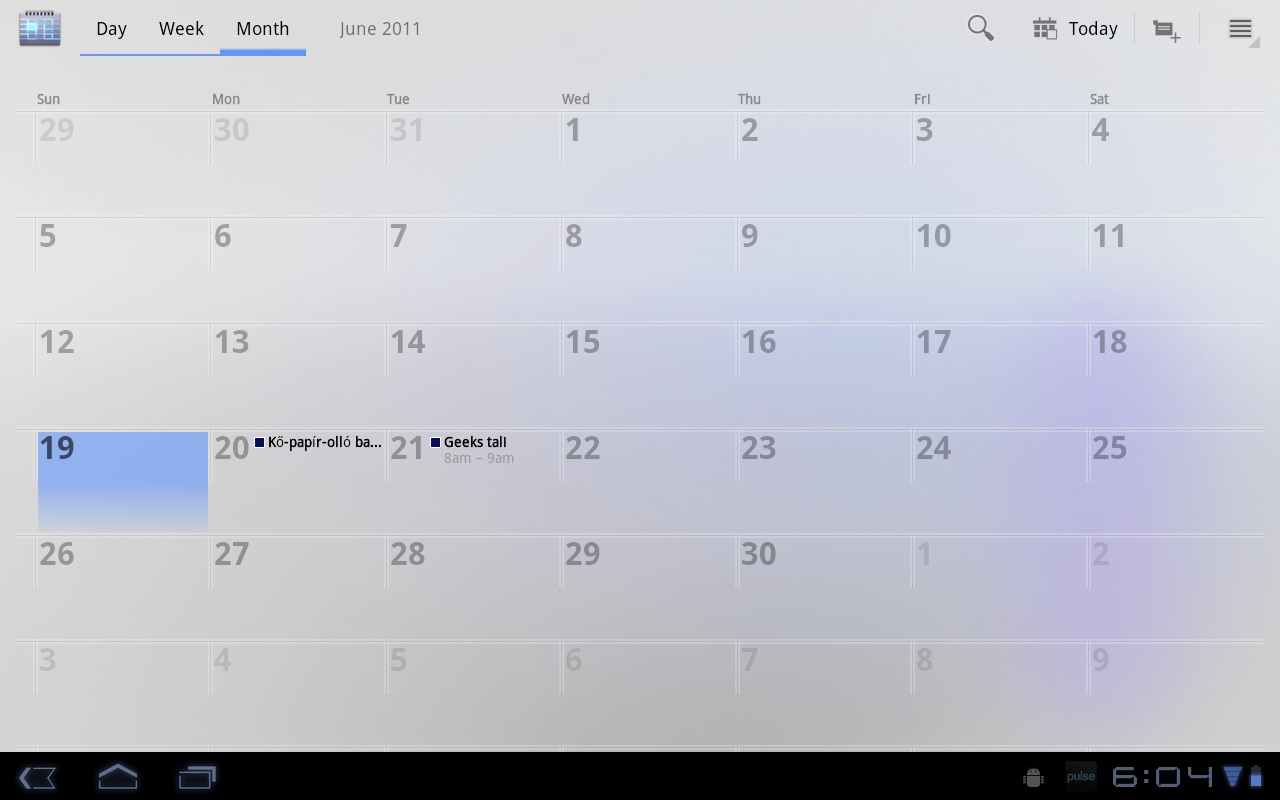 Az eddigiek után a naptár esetében sem kell meglepődnünk – ezt is a nagyobb kijelzőre optimalizálták, mégpedig úgy, hogy a havi nézetet kivéve a bal felső sarokban láthatjuk a klasszikus havi bontást. Az alkalmazáshoz tartozó menüpontok természetesen itt is a felső sávba kerültek, ezekkel tudunk váltani a nézetek között, új eseményt hozzáadni és módosítani a beállításokon.