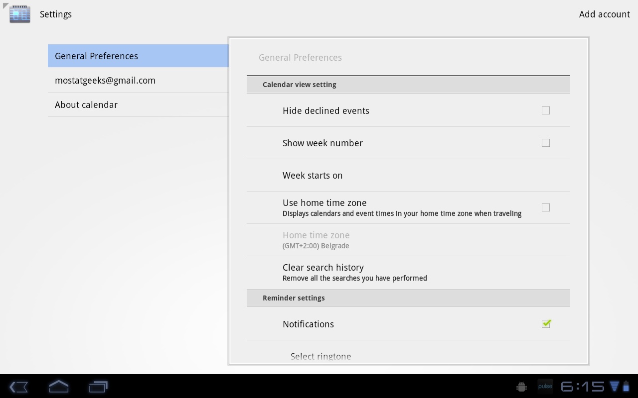 Ez utóbbiak között egyrészt beállíthatjuk a Google Calendarral való szinkronizációt, másrészt a Galaxy S II-höz hasonlóan végre kikapcsolhatjuk az időzónákat átívelő utazás során a kezdő- és befejezési időpontok szinkronizációját is. Erre egyébként külön az új események megadásakor is lehetőségünk van, illetve beállíthatunk cél-időzónát is, ha valami miatt erre van szükségünk.