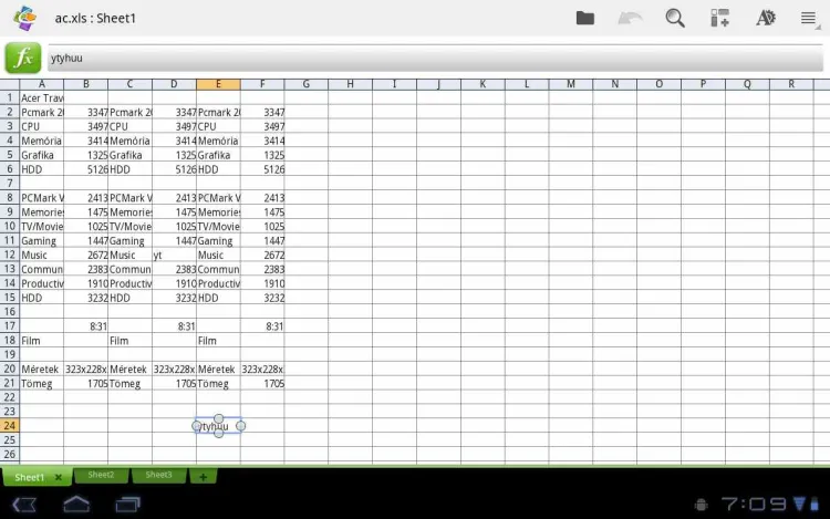 Irodai programból a QuickOffice HD-t kapjuk, ami gyakorlatilag a telefonokból ismerős QuickOffice-nak felel meg, csak nagyobb kijelzőre és felbontásra optimalizálva. Ez egyébként egyike azoknak a felhasználási területeknek, ahol a legtöbbet nyerjük a nagy kijelzővel, a dokumentumok ugyanis sokkal jobban áttekinthetők és szerkeszthetők. A programhoz tartozó böngészővel többféle felhő-alapú szolgáltatáshoz is csatlakozhatunk, így valóban mindenhol elérhetjük a fontos doksikat.