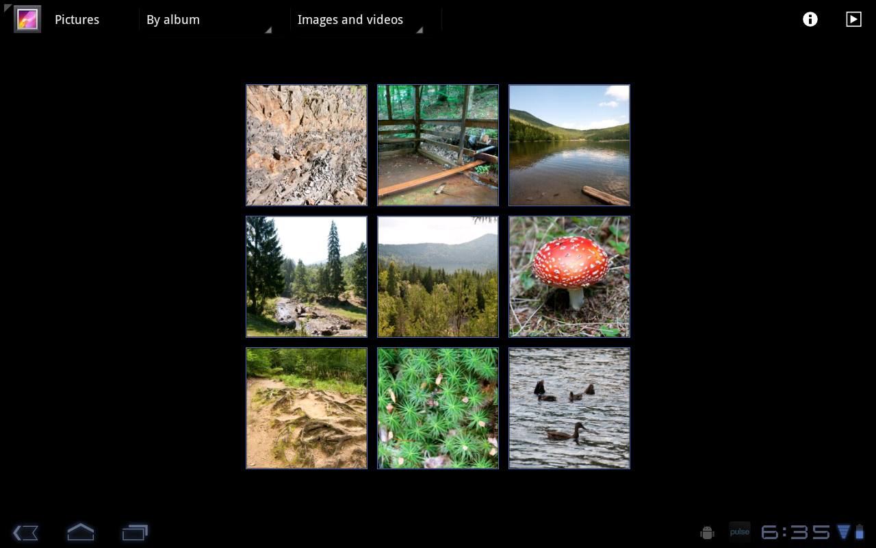 Ha már a fotók nézegetésére használható galériánál tartunk, akkor ezzel kapcsolatban csak annyit mondhatunk, hogy az eddigiekkel ellentétben a Google itt nem sokat gondolkozott, egyszerűen fogta a telefonos változatot, és minimális változtatással átemelte a Honeycombba. Ez végeredményben azt jelenti, hogy alapvetően ugyanazt a kinézetet és funkciókat kapjuk, persze a nagyobb kijelző miatt azért van pár extra (például a teljes képernyős nézeten alul megjelenő diacsík). A képekből diavetítést indíthatunk, ezen felül pár alap szerkesztési lehetőséget is kapunk.