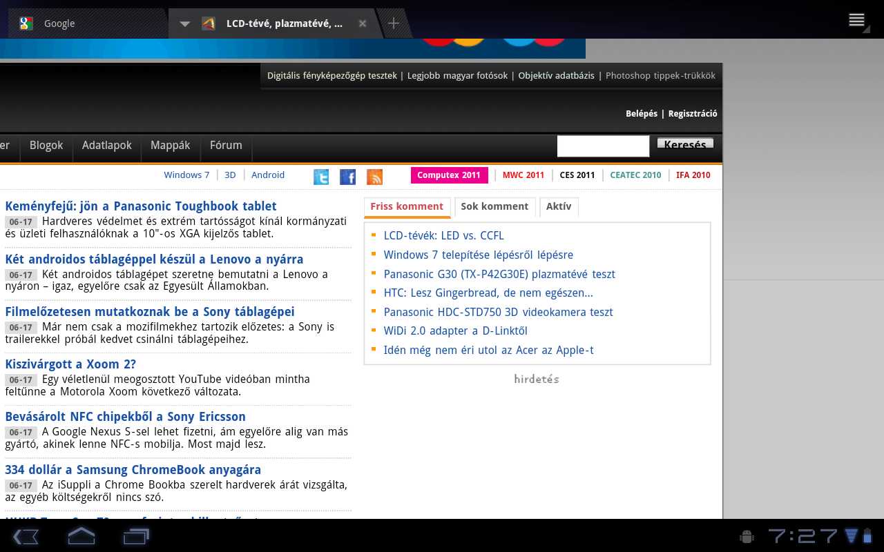 Ami a Flasht illeti, ez persze támogatott, és van külön YouTube-kliens is, ha azt szeretnénk inkább használni. Sajnos, bár a Tegra 2-től elvárnánk, a HD-s YouTube videók lejátszása nem ment teljesen folyamatosan, ami remélhetőleg csak valamiféle optimalizálási probléma, hiszen papíron a lapkakészletnek nevetve kéne megbirkóznia a 1080p-s klipekkel is.