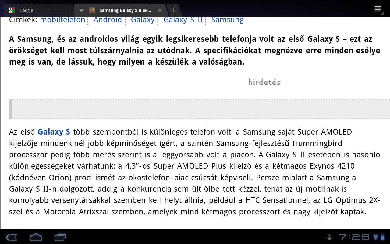 Samsung Galaxy Tab 10.1v táblagép teszt