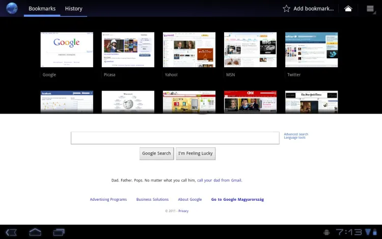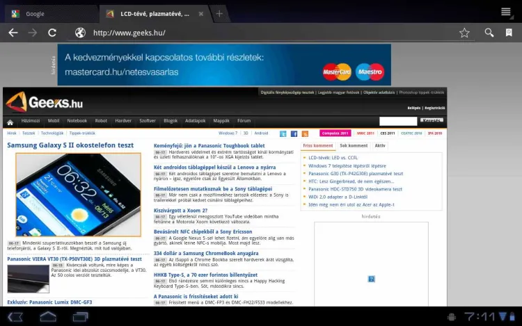 A táblagépek egyik legfontosabb funkciója az állandó internetelérés, és erre a Galaxy Tab P7100 is kiválóan megfelel. A Honeycombhoz tartozó böngésző remekül használja ki a nagyobb felületet, menüje is sokkal kényelmesebb, mint telefonos társaié.