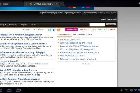 Bár a 10,1 colos kijelző nem teszi kötelezővé az átméretezést, a kétujjas zoom és a duplakattintásra működő áttördelős zoom használható. Apró figyelmesség, hogy a böngésző nem mobilprogramként jelenti be magát, tehát a weboldalak is általában asztali böngészőhöz méltóan jelennek meg, nem pedig mobil verzióban.