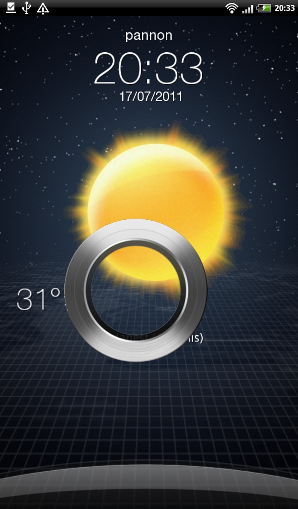 A bekapcsolás után az első, amivel találkozni fogunk, a lezáró képernyő, amelyen a Honeycombról ismerős körrel is találkozhatunk, igaz, csak félkör formában – ezt kell a képernyő aljáról felhúznunk ahhoz, hogy oldjuk a zárást. A négy, egyébként testre szabható ikon segítségével azonban négy alkalmazást kijelölhetünk arra, hogy feloldás nélkül is elérjük őket, ezek alapesetben a levelezés, a naptár, a böngésző és a kamera lesznek. Ezek használatához az ikont kell a feloldó kör közepébe húzni, ekkor elindul az adott szoftver (és mellékesen a tablet lezárása is feloldódik). Az ikonok cseréje mellett még egy lehetőségünk van testreszabás tekintetében: az aktuális időjárást is megjeleníthetjük szép animált formában.