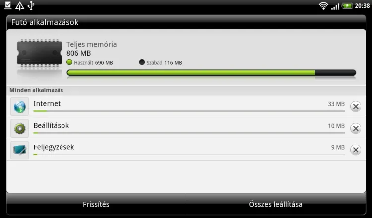 Memóriából 1 GB került a készülékbe, a háttértár mérete pedig modelltől függően 16 vagy 32 GB lehet, ezt tudjuk microSD kártyákkal kiegészíteni. A Marketről telepíthető alkalmazások számára ebből közel 8 GB áll rendelkezésre, helyszűkében biztosan nem leszünk.