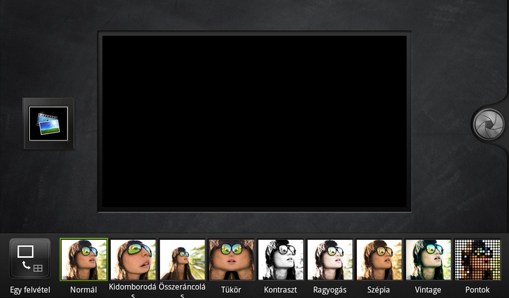 A kamerához tartozik még a Snapbooth nevű alkalmazás, amit a főmenüből külön is elindíthatunk, de a kamera kezelőfelületén a varázspálca ikonnal is előhívhatjuk. Ennek segítségével többféle effektet kapcsolhatunk be, a fekete fehér és ódivatú képektől a pontokra bontottig.