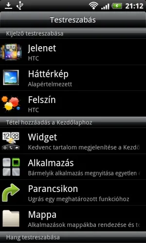 Főképernyőből összesen hét darab áll rendelkezésre, ezek testreszabása a többi androidos készülékkel megegyező módon történik, azaz könyvtárakat, minialkalmazásokat és shortcutokat is kipakolhatunk rájuk. Legyünk bármelyik képernyőn, alul egy íves sávban három gombot találunk, felettük pedig egy apró jelzés mutatja, hogy a hét képernyőből éppen hol járunk. A gombok közül a középsővel a telefon funkciót érjük el, a bal oldalival a főmenühöz jutunk, míg a jobb oldali a testreszabás menüt hozza be, amely most már a hangok módosítását is lehetővé teszi.