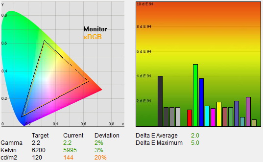 | Fekete fényerőssége kalibráció után | 0,18 cd/m² |