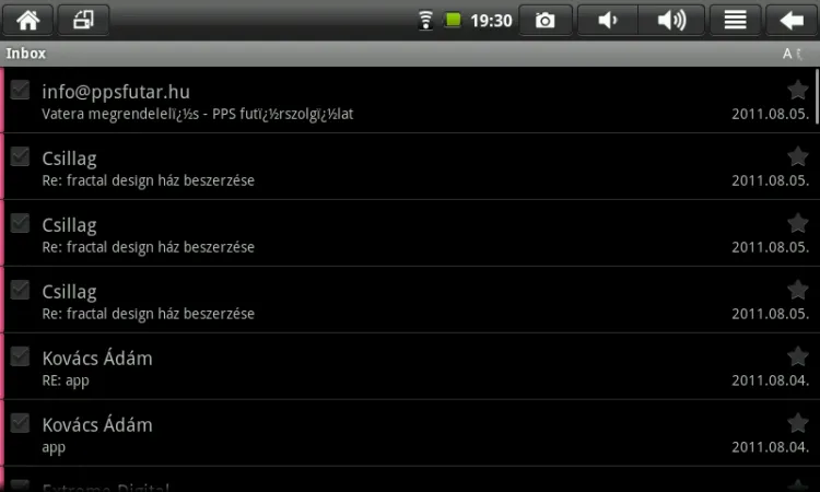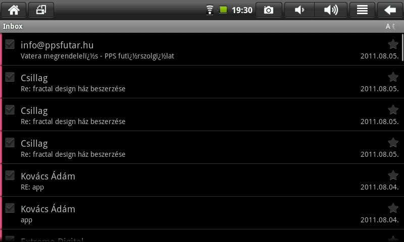 A Gmail natív kliense nem került rá a gépre, viszont a sima email alkalmazás igen, így a levelek követésével sem lesz gond a PlayTabon. Igaz, hogy a lista nézete elég csúnyácska a fekete hátterével, de mivel a leveleknél támogatott a HTML, a képek letöltésével teljes értékűen tekinthetjük meg az emaileket.
