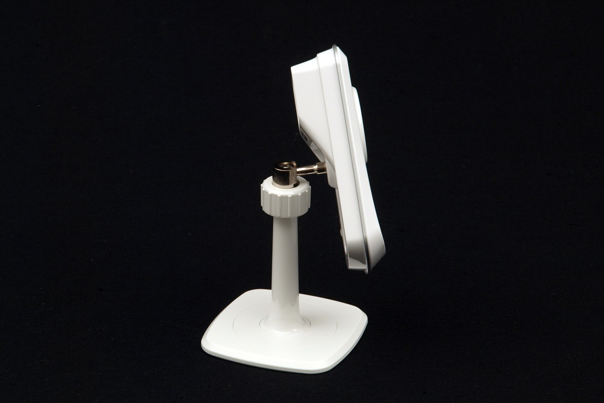 A kamerához természetesen jár egy talp is, amellyel a DCS-930L alapesetben az asztalra állítható, de kialakítása olyan, hogy akár a falra is fel lehet vele szerelni a kamerát. Az állvány rúdján lévő, manuálisan forgatható és rögzíthető csukló biztosítja, hogy a készülékházat bármilyen irányba tudjuk pozícionálni.
