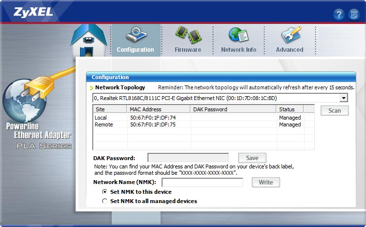 Komolyabb beállításra csak akkor van szükség, ha több hálózatot akarunk konfigurálni. Erre természetesen van lehetőség, mégpedig a telepítő CD-n található Zyxel Powerline Configuration programmal; az eszközöket a hálózati azonosító segítségével csoportosíthatjuk. Értelemszerűen csak azok az adapterek tudnak egymással kommunikálni, amelyek hálózati azonosítója (NMK) egyezik.