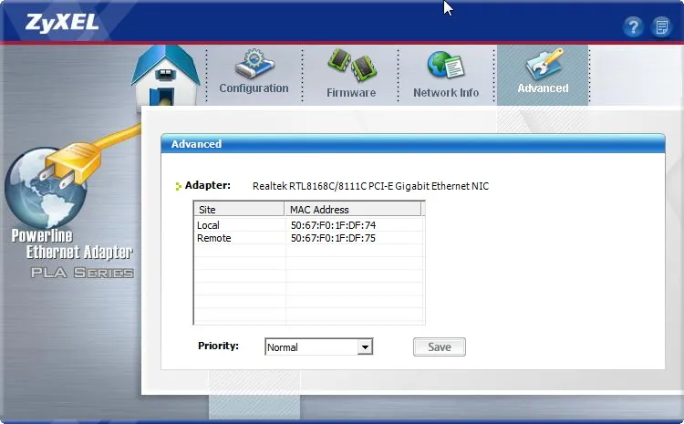 A konfigurációs alkalmazás segítségével lehet továbbá a firmware-t frissíteni, megnézni, hogy melyik adapter látja el a vezérlőegység feladatát, illetve a powerline adaptereknek prioritást is adhatunk. Ha például a NAS, amely a háttérben letölteni is tud, alacsony prioritást kap, akkor nagysebességű letöltésnél sem fogja majd vissza a teljes hálózat sebességét. Az adaptereken a LED csak nagyjából adja meg a linksebességet, a Powerline Configuration alkalmazás viszont pontosan ki is jelzi.