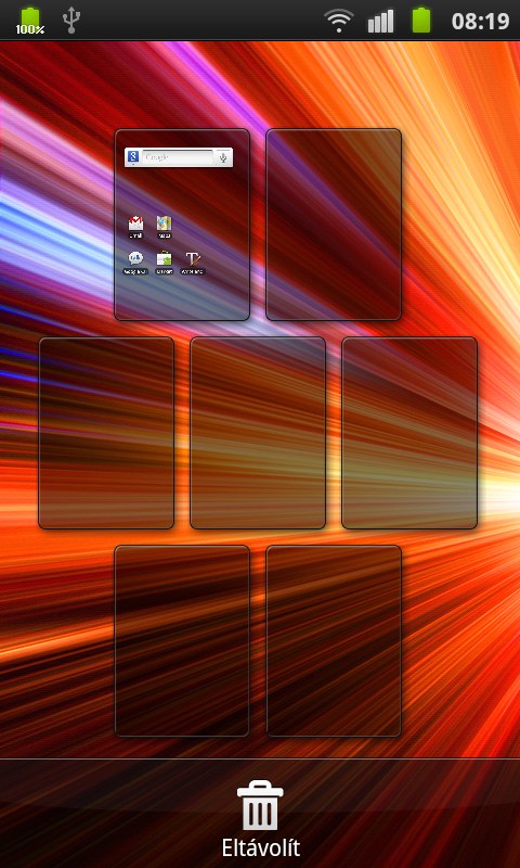 Kezdőképernyőből továbbra is hét darab áll rendelkezésre, ám a „főképernyő” ezek közül nem a középső, hanem a balszélső lesz. A felesleges képernyők törölhetők, így ha nem akarunk ennyi oldal között lapozgatni, csökkenthetjük a számukat. Az oldalak törlésére a legegyszerűbb megoldás egyébként, ha ujjainkkal „összenyomjuk” a kijelzőt, és máris rendelkezésünkre állnak a törlésre és az új képernyő hozzáadására szolgáló gombok.