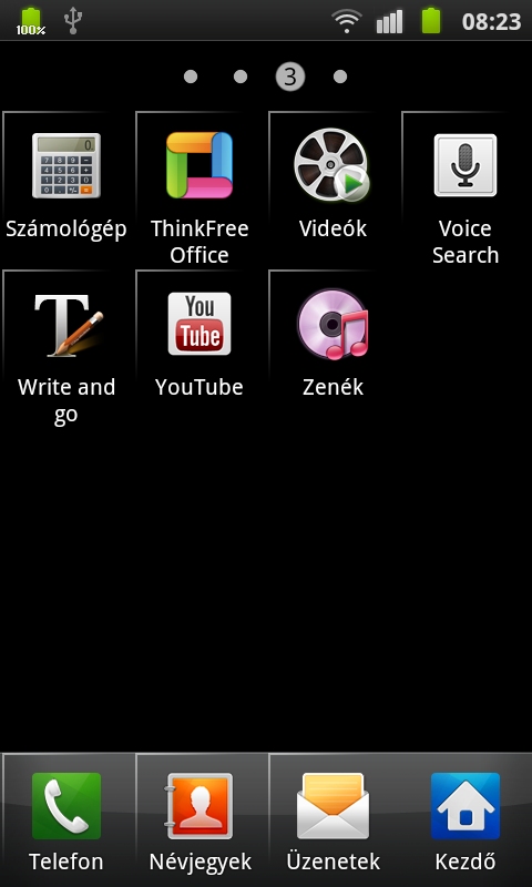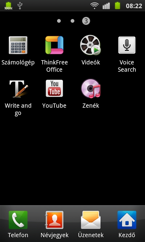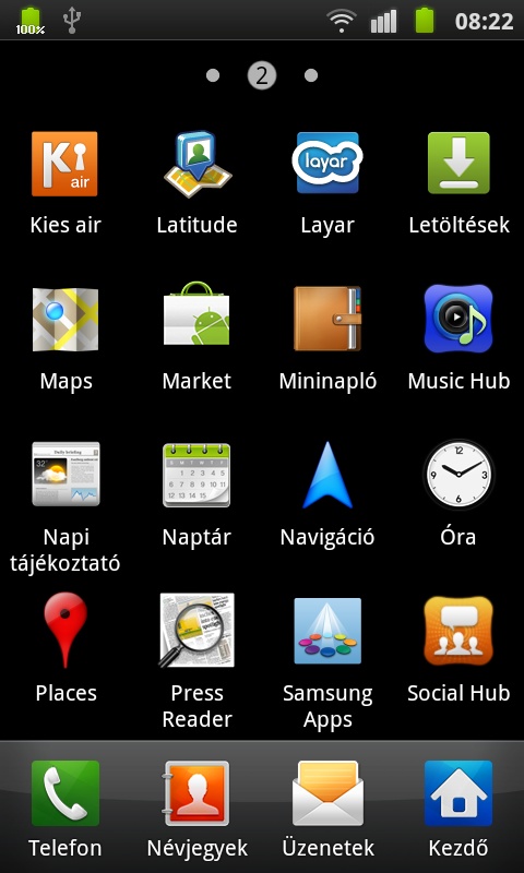Az egyes oldalak testreszabása az eddig megszokott módon történhet, azaz könyvtárakat, minialkalmazásokat és shortcutokat is kipakolhatunk rájuk. A Samsungtól megszokott módon a képernyő legalsó sorában négy ikon fogad bennünket, amelyekkel a legfontosabb funkciókat érhetjük el – nevezetesen a telefont, a névjegyeket, az üzeneteket és persze a főmenüt, a többi alkalmazással.