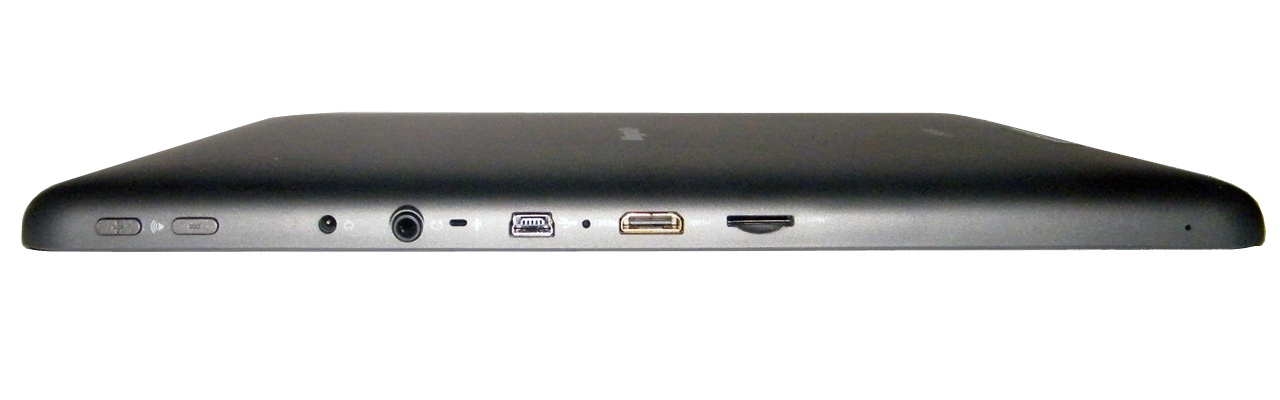 A tervezőknek sikerült a készülék jobb oldalára besűríteni minden gombot és csatlakozót. Legfelül a hangerő szabályozására való gombok található, ezek alatt pedig sorban helyezkednek el a különféle portok. A töltéshez speciális táp szükséges, az xTAB-100 sajnos USB-n keresztül nem vesz fel töltést. Ha már USB, akkor azt is érdemes megemlíteni, hogy sajnos nem microUSB került az eszközre, amelyet pedig manapság már alapkövetelménynek gondolnánk, helyette a régebbi USB mini-B-vel van dolgunk. A dobozban találunk egy USB OTG átalakítót, amellyel egy szabványos USB 2.0 portot kapunk, ide akár pendrive-ot is dughatunk. Ezen kívül a tabletre került mikrofon, mini HDMI, audio kimenet, microSD-kártyahely és kézi reset gomb is.