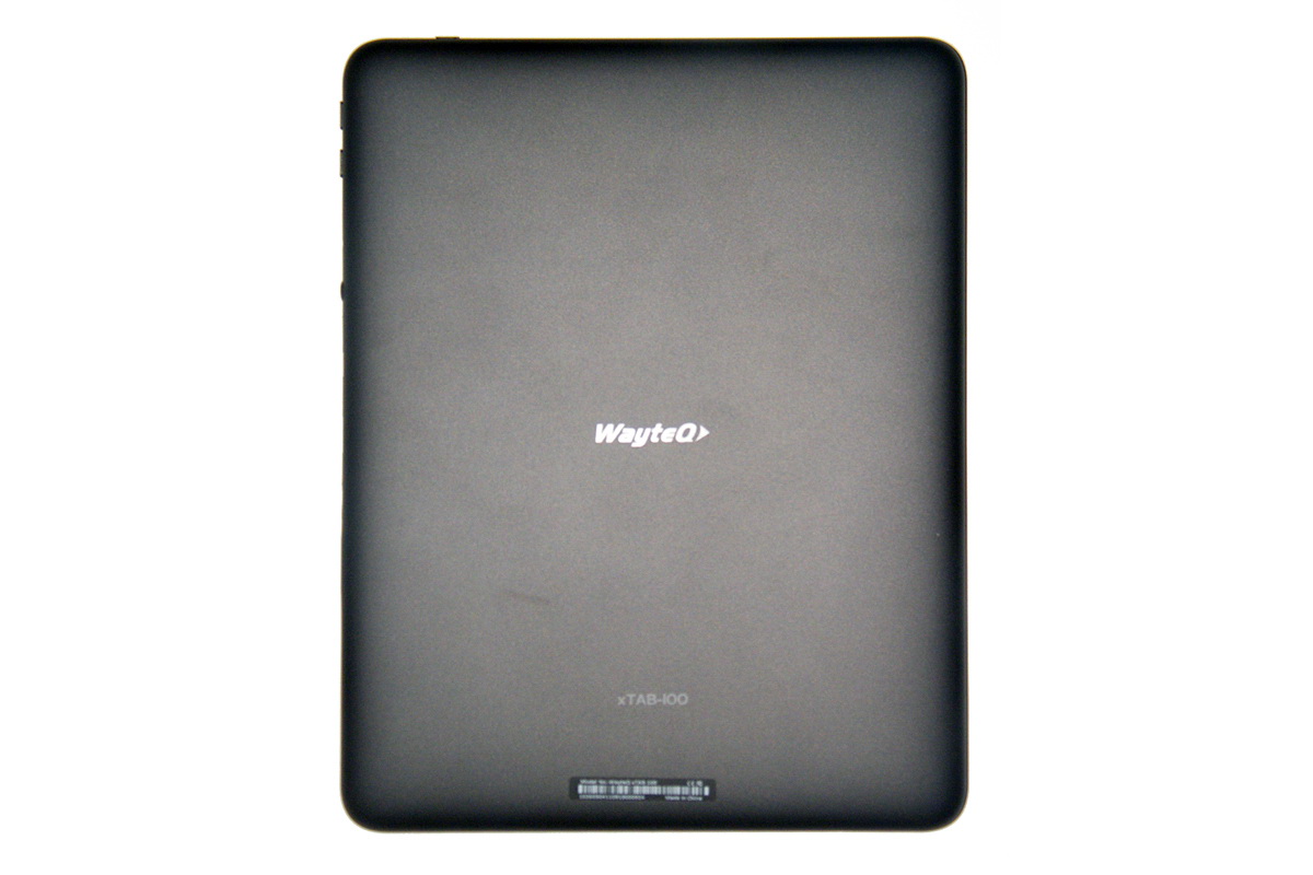 A készülék tetejére a bekapcsoló gomb jutott (jobb oldalra), míg lentre két hangszóró került. A WayteQ xTAB-100 bal oldala teljesen üres, ugyanúgy, ahogyan a hátlapja is. Az xTAB házára akár a ma oly divatos unibody kialakítást is használhatnánk, azonban itt szó nincs egy tömbből mart alumíniumról – helyette fröccsöntött műanyagot használtak a gyártás során. A borítás tapintása egyébként nagyon finom, kellemes, a tabletet jó megfogni, és nem is csúszik ki a kezünkből.