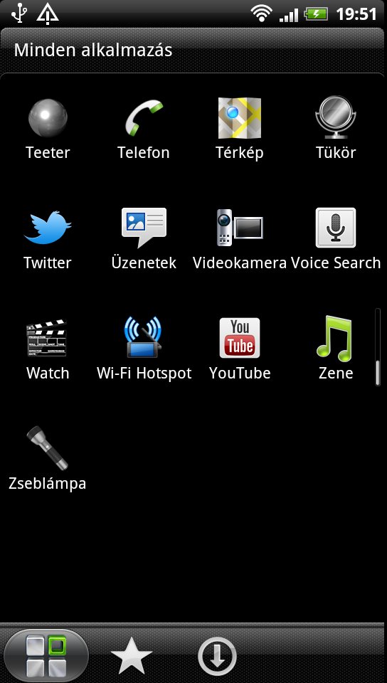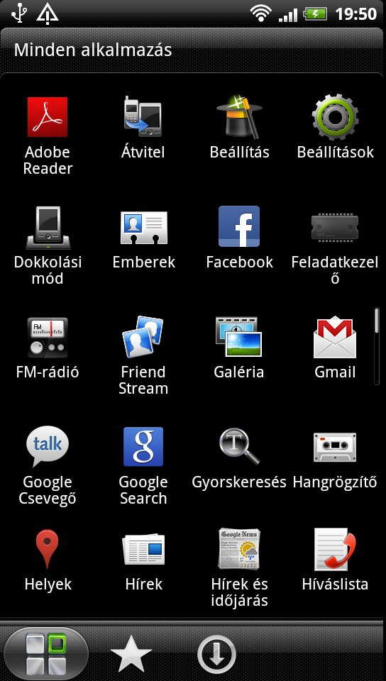 Főképernyőből összesen hét darab áll rendelkezésre, ezek testreszabása a többi androidos készülékkel megegyező módon történik, azaz könyvtárakat, minialkalmazásokat és shortcutokat is kipakolhatunk rájuk. A képernyők száma sajnos nem, de sorrendje változtatható. Legyünk bármelyik képernyőn, alul egy íves sávban három gombot találunk, felettük pedig egy apró jelzés mutatja, hogy a hét képernyőből éppen hol járunk. A gombok közül a középsővel a telefon funkciót érjük el, a bal oldalival a főmenühöz jutunk, míg a jobb oldali a testreszabás menüt hozza be, amely most már a hangok módosítását is lehetővé teszi.