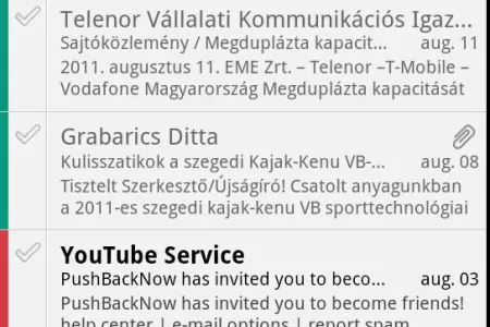 Levelezőkliensből kettőt kapunk: a Gmailhez tartozó a szokásos funkciókkal rendelkezik, míg a másikkal POP3, IMAP és Exchange fiókokhoz is kapcsolódhatunk. Az utóbbinál újdonság, hogy nemcsak külön-külön nézhetjük meg a fiókokat, hanem összefésülve is láthatjuk a beérkezett leveleket. Akinek több e-mail fiókja van, az nagyon hasznosnak fogja találni ezt a lehetőséget. A levelek letöltése teljesen testreszabható, a levelek szövegében pedig működik a copy/paste is.