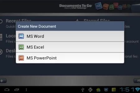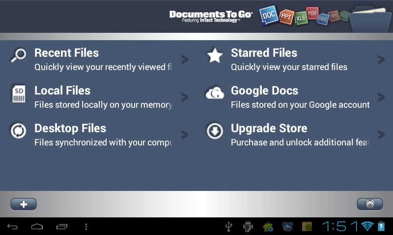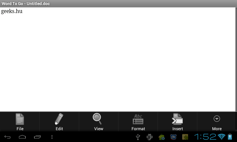 Irodai dokumentumok kezelésére a Documents To Go alkalmazás található meg a készüléken, amellyel nemcsak megnyitni tudjuk a dokumentumainkat, hanem szerkeszthetjük is azokat, vagy újakat hozhatunk létre. Persze a dokumentumok kezelése eléggé alapszintű, elég kevés formázási lehetőséget kínál például az alkalmazás.