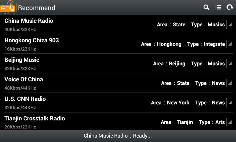 A rádiózás szerelmeseinek ajánlhatnánk az Any Radiót, azonban ennek használatához is kell az ázsiai kultúra szeretete, ugyanis csak ilyen rádióadók találhatók meg benne – sajnos magyar adást nem sikerült „befogni” rajta.