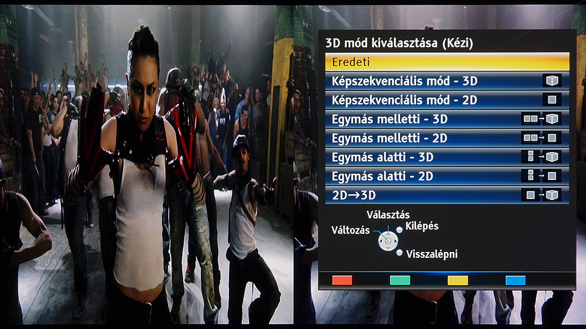 A szemüveg a működési elvből adódóan természetesen jócskán sötétít a képen, a méréseink alapján a maximális fényerő 47 cd/m² THX 3D módban, tehát nappali fényviszonyok között nem igazán lehet filmet nézni 3D-ben. A színhelyesség drámai módon nem változik, persze ha ez nem így lenne, akkor a tévé nem kapta volna meg a THX 3D minősítést.