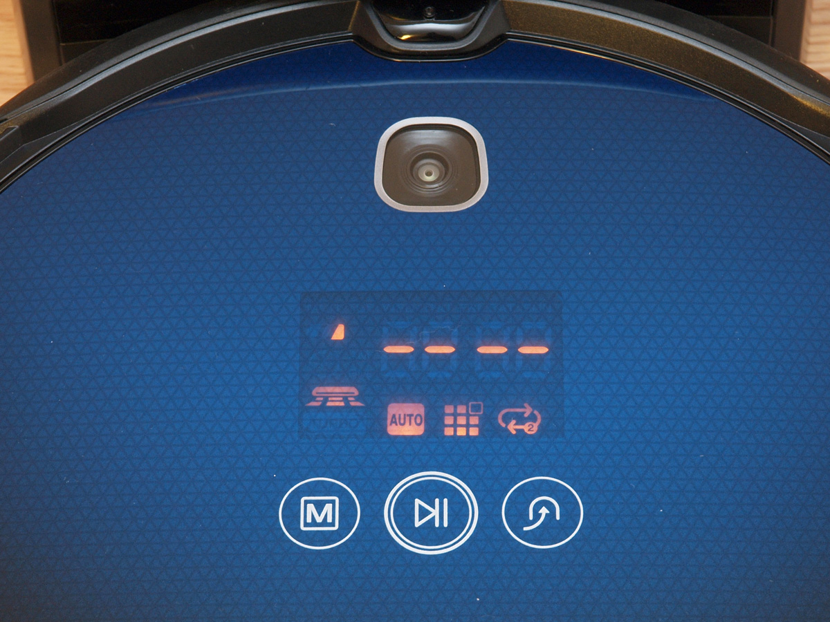 A kezelőfelület előtt található kamera a navigáció során kap szerepet. Folyamatosan figyeli a robot fölötti plafont, és visszajelzéssel szolgál a robot valós mozgásáról és furdulatairól. Korábban nagyon lelkesedtünk az ilyen megoldásokért, de a tapasztalatok alapján az ilyen kamerák sokkal kisebb jelentőséggel bírnak, mint ahogy azt a gyártók általában beállítják. Ennél a robotnál szükség van a kamera visszajelzéseire, de azért a navigáció enélkül is jól megoldható lenne.