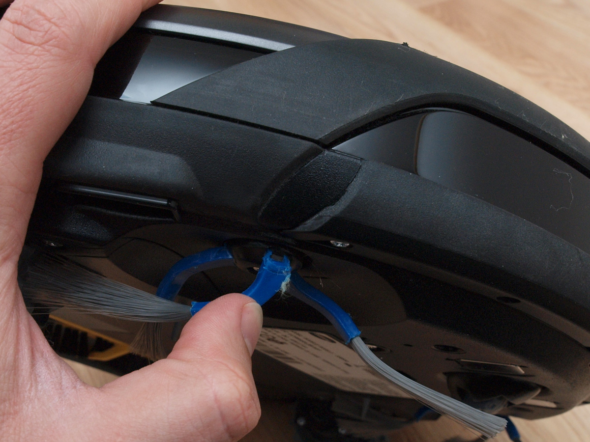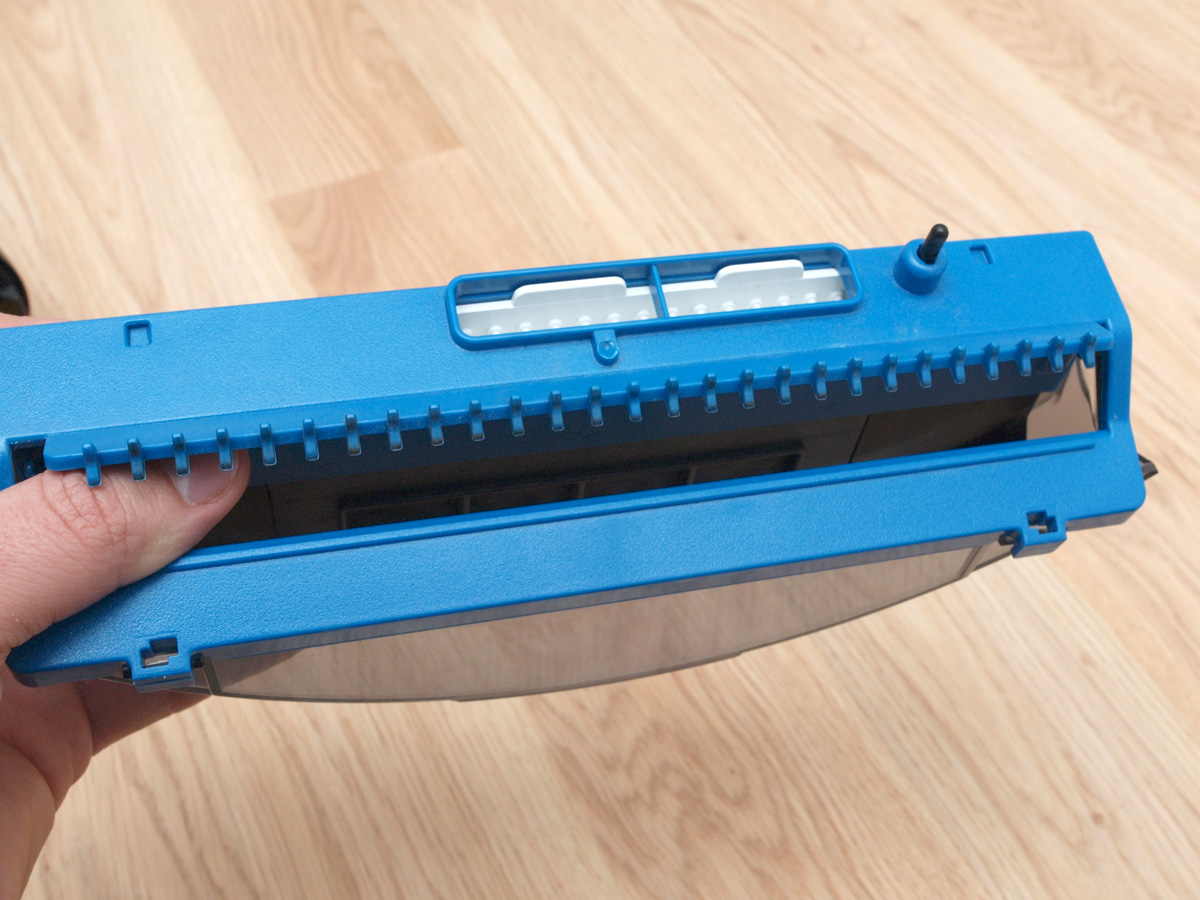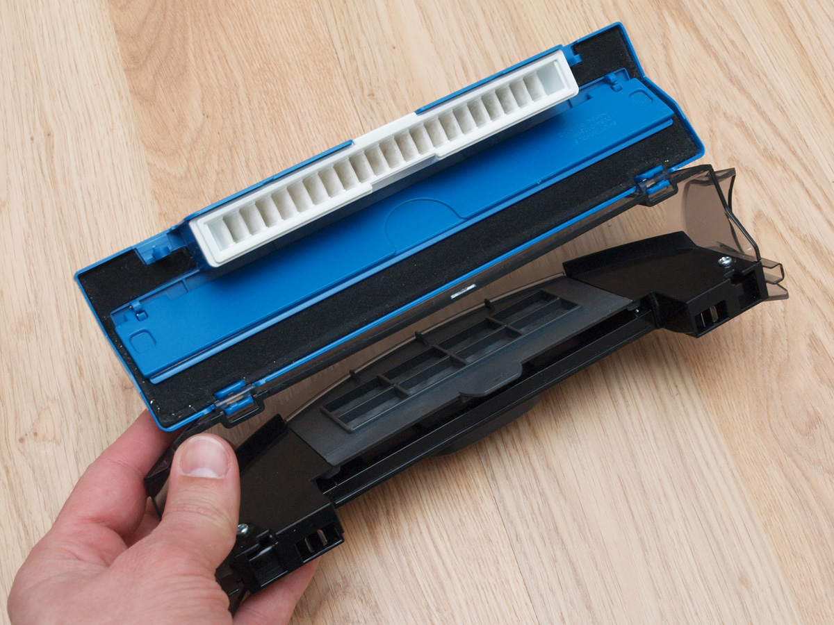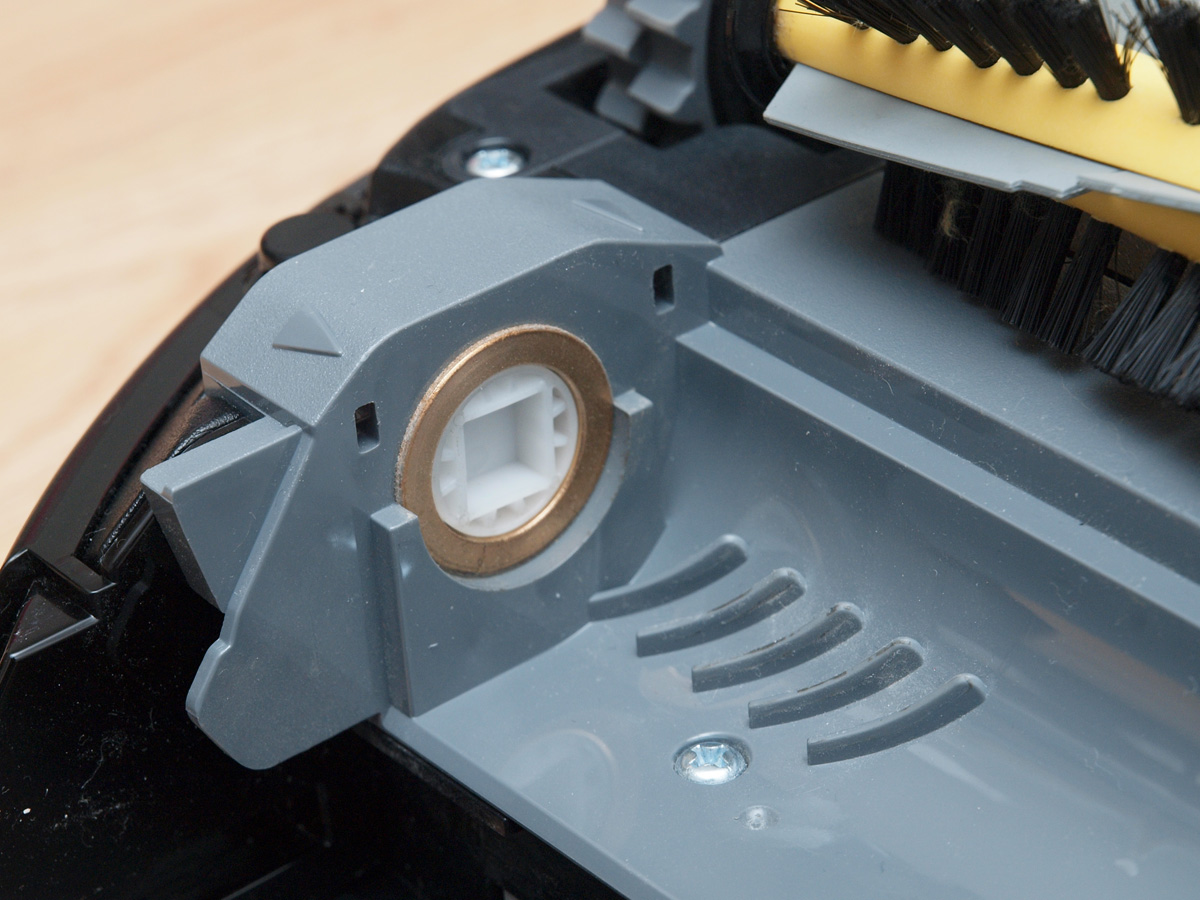 A tisztító egység a kerékhez hasonlóan szintén egyben kiemelhető. A robot egyetlen hosszú kefés hengerrel takarít, amin a kefesorok mellett gumilapátok is vannak. A hengert szíjhajtás forgatja, amit a mérnökök egy egyik oldalán átlátszó házba rejtettek, így az oda bejutó és ott felhalmozódó kosz mennyisége kívülről is jól látható. A kefe egyébként 4 cm-rel hosszabb, mint az előd modellben, így a tisztítási szélesség 16 cm-ről 20 cm-re nőtt.