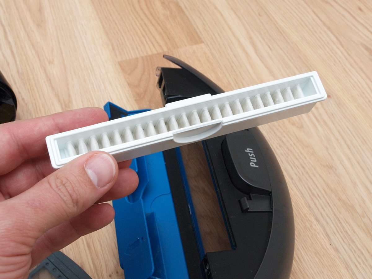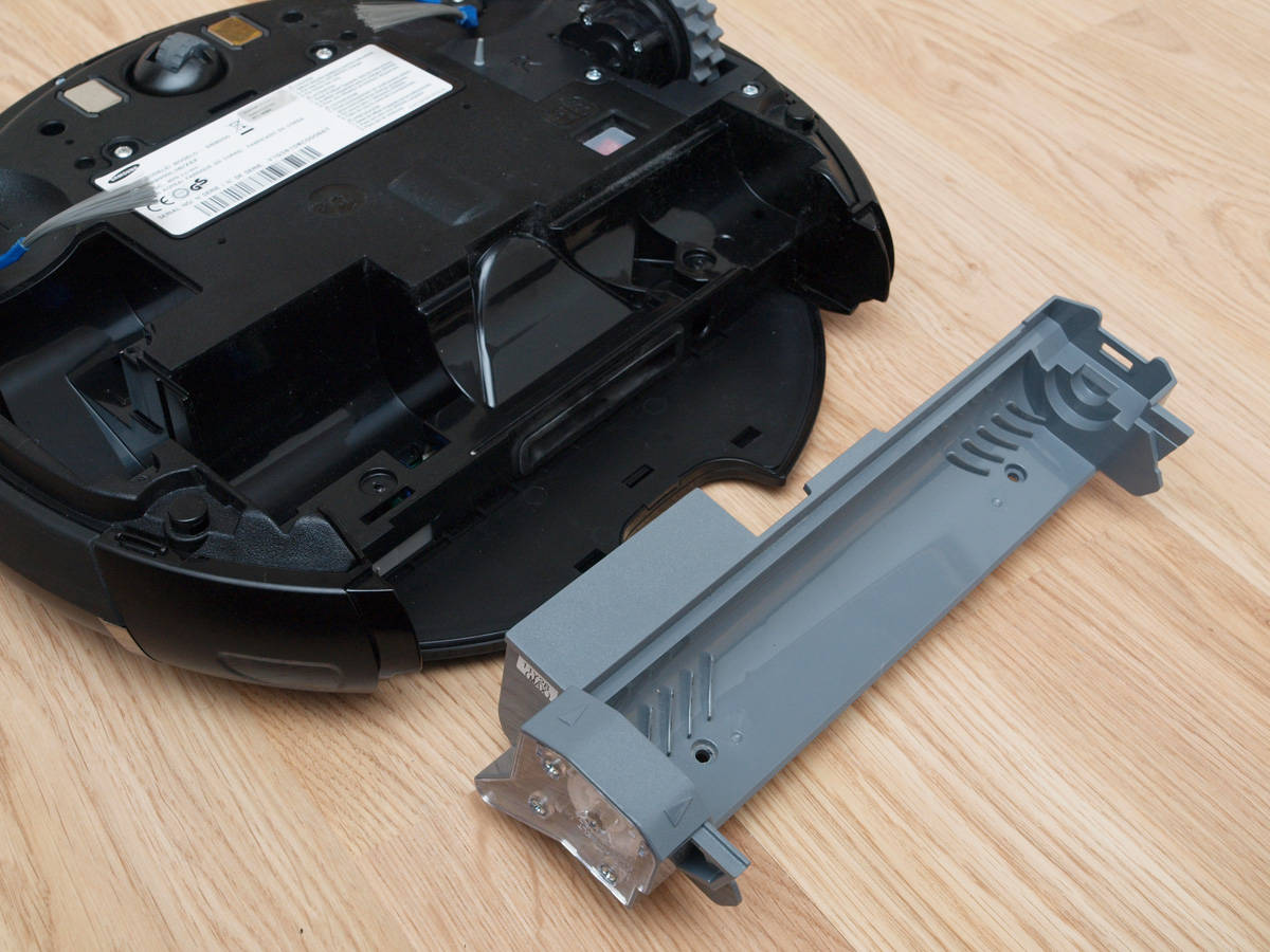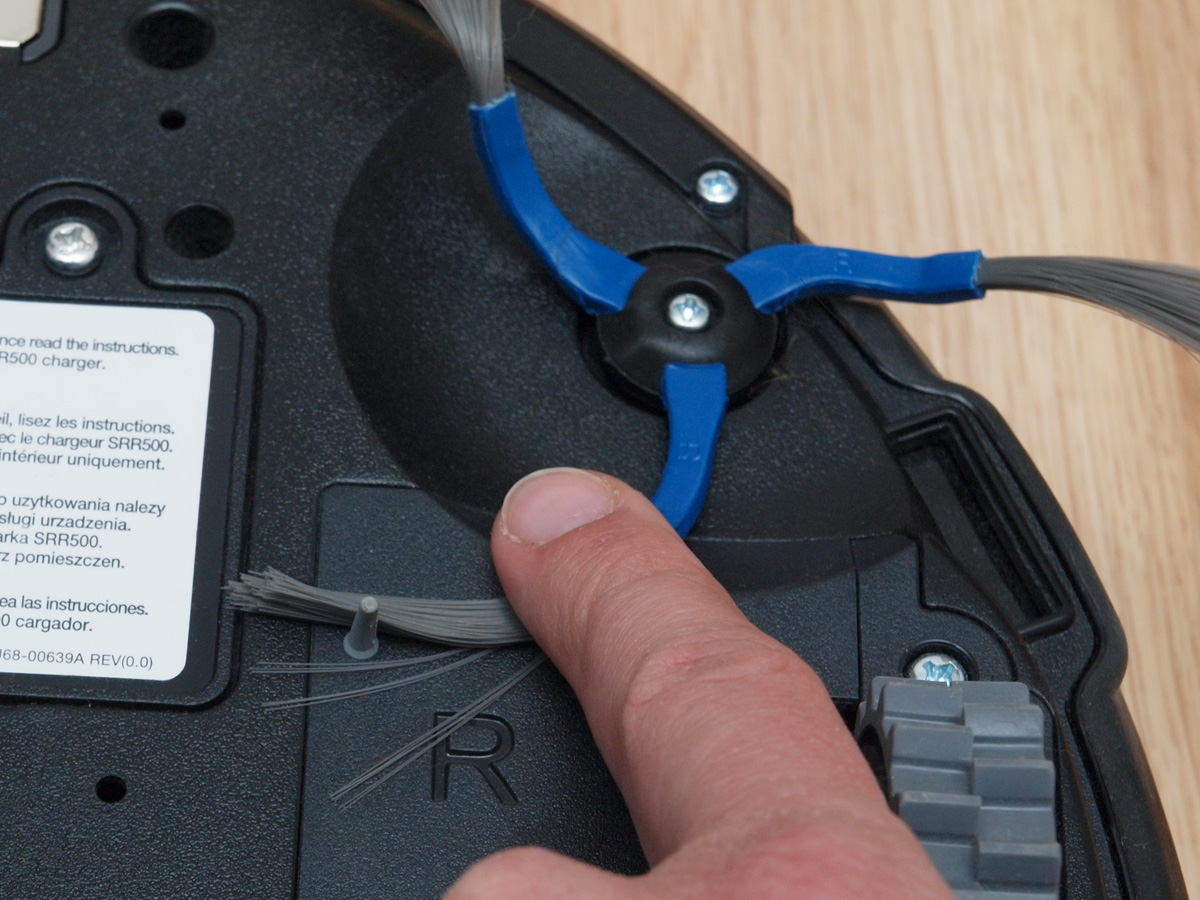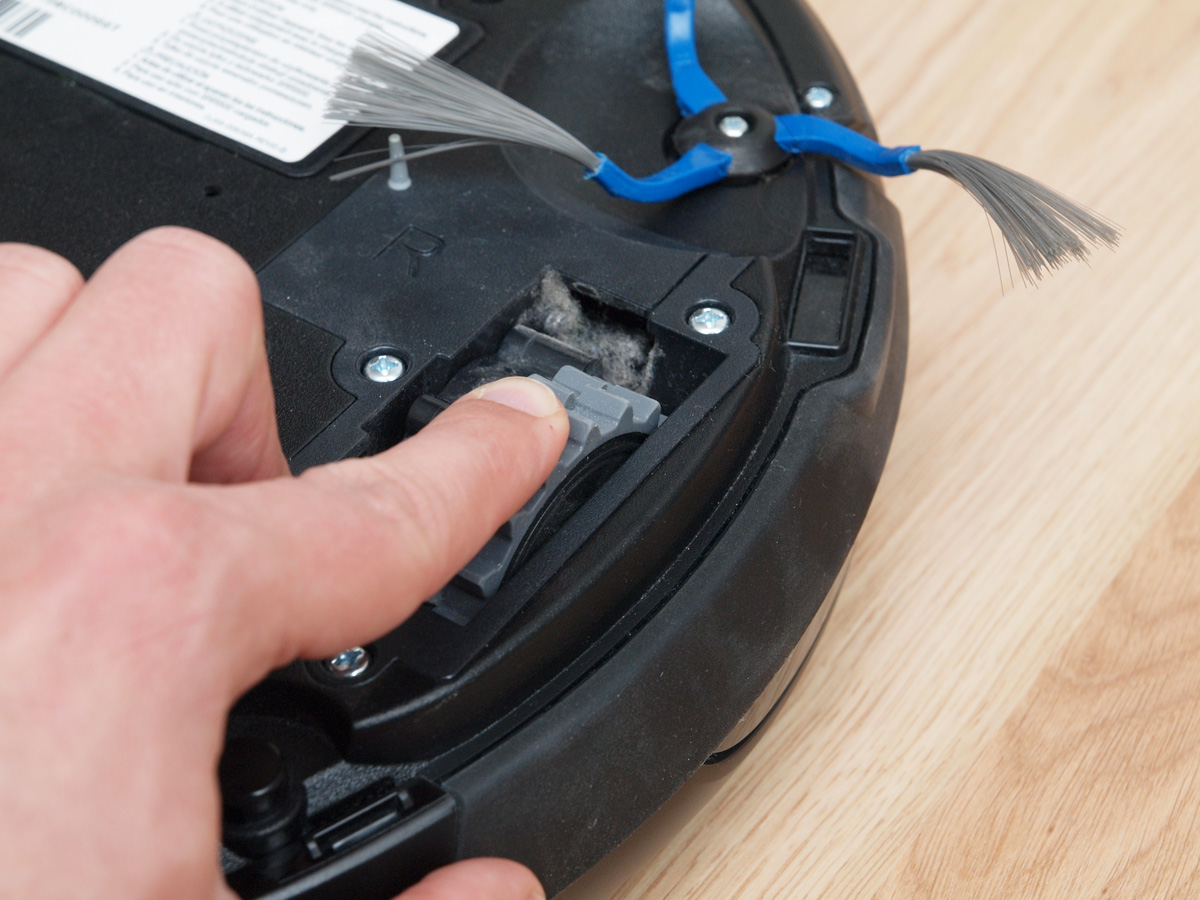 A tisztító egység a kerékhez hasonlóan szintén egyben kiemelhető. A robot egyetlen hosszú kefés hengerrel takarít, amin a kefesorok mellett gumilapátok is vannak. A hengert szíjhajtás forgatja, amit a mérnökök egy egyik oldalán átlátszó házba rejtettek, így az oda bejutó és ott felhalmozódó kosz mennyisége kívülről is jól látható. A kefe egyébként 4 cm-rel hosszabb, mint az előd modellben, így a tisztítási szélesség 16 cm-ről 20 cm-re nőtt.