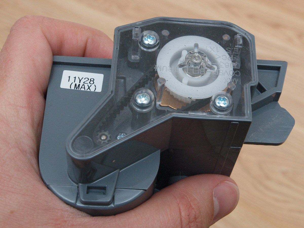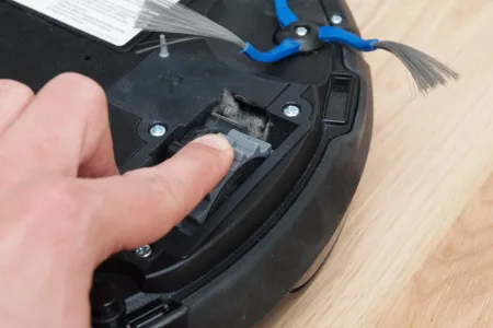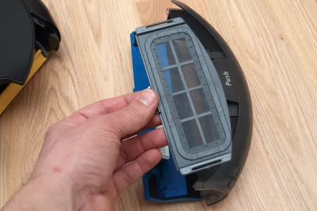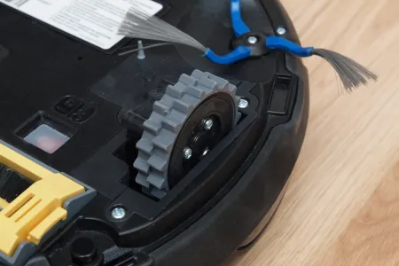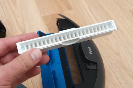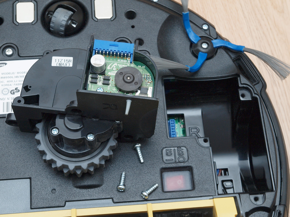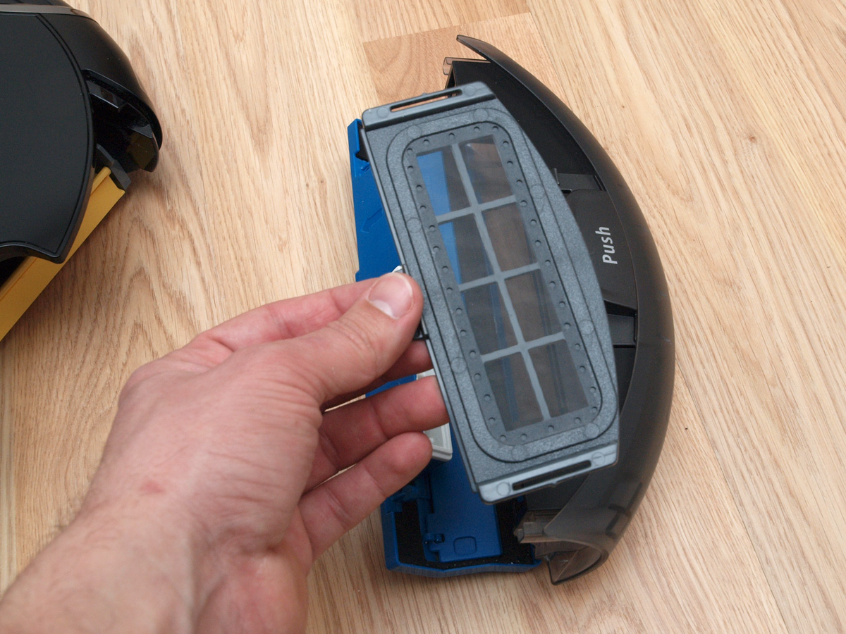 A tisztító egység a kerékhez hasonlóan szintén egyben kiemelhető. A robot egyetlen hosszú kefés hengerrel takarít, amin a kefesorok mellett gumilapátok is vannak. A hengert szíjhajtás forgatja, amit a mérnökök egy egyik oldalán átlátszó házba rejtettek, így az oda bejutó és ott felhalmozódó kosz mennyisége kívülről is jól látható. A kefe egyébként 4 cm-rel hosszabb, mint az előd modellben, így a tisztítási szélesség 16 cm-ről 20 cm-re nőtt.