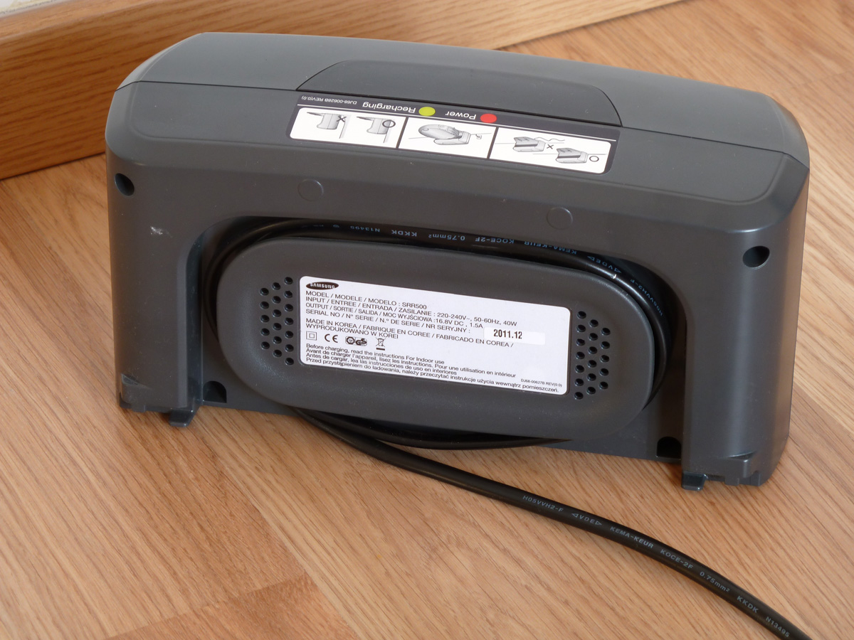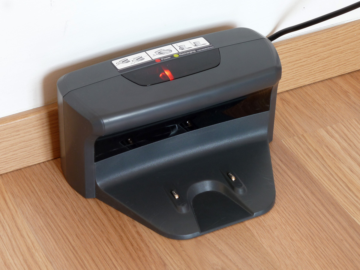 A Navibot S SR8950 mellé a Samsung egy kompakt dokkoló állomást mellékel, ami a robot automatikus töltését biztosítja. Az érintkezőket a gyártó a dokkolóból kinyúló tálcára helyezte, az erre ráfutó robot alján lévő érintkezők ehhez illeszkedve hozzák létre a töltéshez szükséges kapcsolatot (hasonlóan a Roomba robotokhoz). A dokkoló tápkábelének a használaton kívüli része a dokkoló hátlapján kialakított fülekre tekerhető. A dokkoló tetején lévő két LED a dokkoló működéséről és a töltésről ad visszajelzést. (Nagyon erős a fényük, ezért sötétben zavaróak lehetnek.)