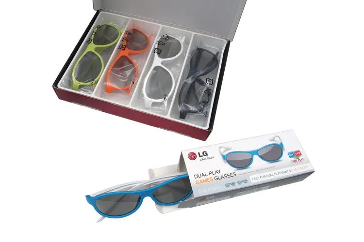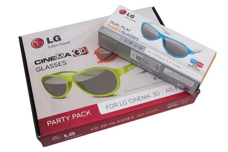 Az LG a tévéhez összesen hat szemüveget ad, ebből négy hagyományos, tévénézésre való, kettő viszont DualPlay csomagban érkezik. Ezek közül az egyiknek mindkét lencséje a bal szemnek szánt képet engedi át, a másikkal pedig a jobb szem képét láthatjuk. A DualPlay csomagnak olyan számítógépes játékoknál vehetjük hasznát, amelyeket ketten is lehet játszani: osztott képernyő helyett így mindkét fél a teljes képernyőn láthatja saját képét.