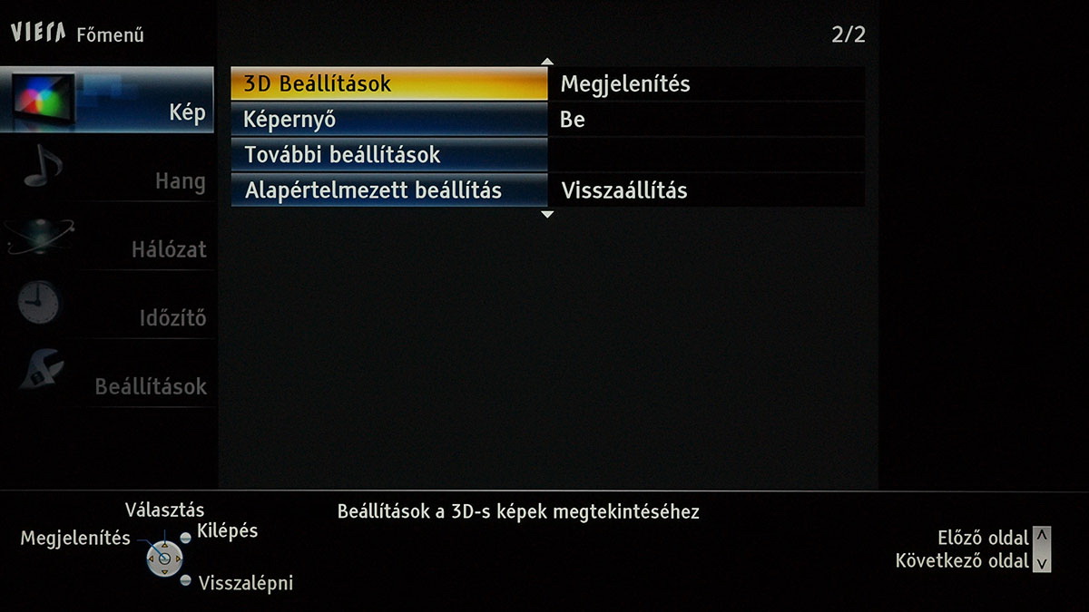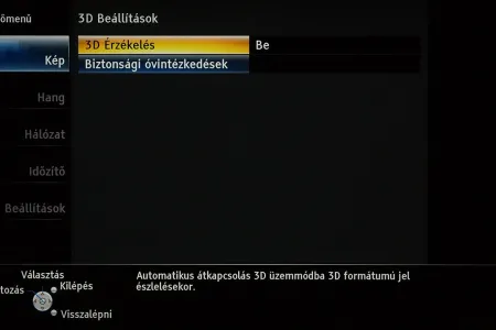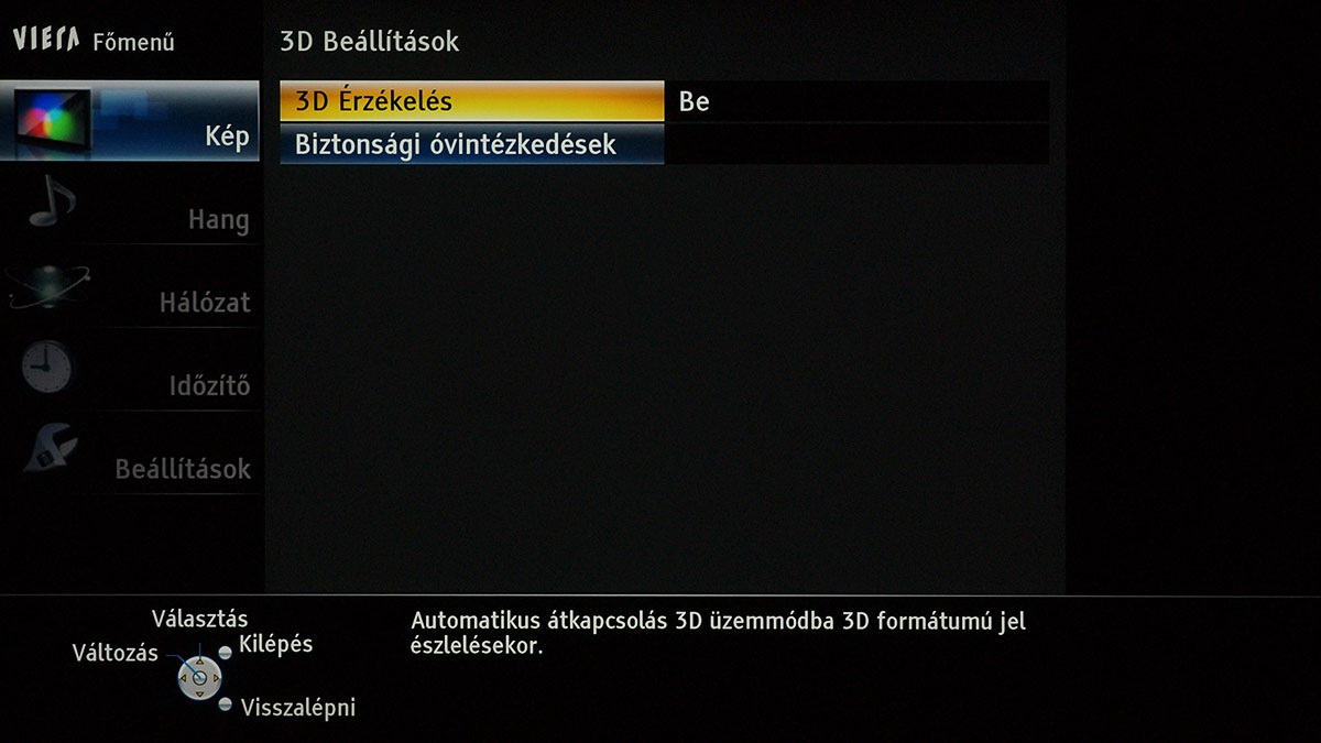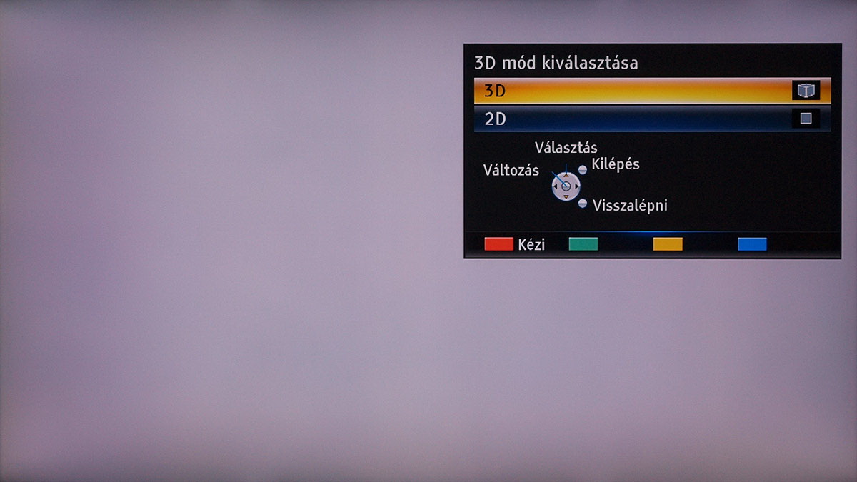 A Panasonic TX-L42ET5, mint minden 3D tévé, természetesen az összes jelforrással megbirkózik; közülük továbbra is a frame-by-frame illetve a side-by-side formátumok azok, amelyekkel a gyakorlati használat során találkozhatunk. A tévé elektronikája mindkét típust képes felismerni, de megbízhatóan csak a frame-by-frame tartalommal működött, az SBS filmeknél gyakran előfordult, hogy kézzel kellett a 3D módon elindítani. Nagyon ez sem bonyolult persze: a 3D majd a piros gomb megnyomása után tudjuk a side-by-side formátumot kiválasztani. (Egyébként éppen ezzel a módszerrel lehet a 2D-3D konverziót is aktiválni – ez mindig manuális indítást igényel.)