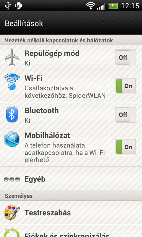 Kezelőfelület (HTC Sense 4.0)