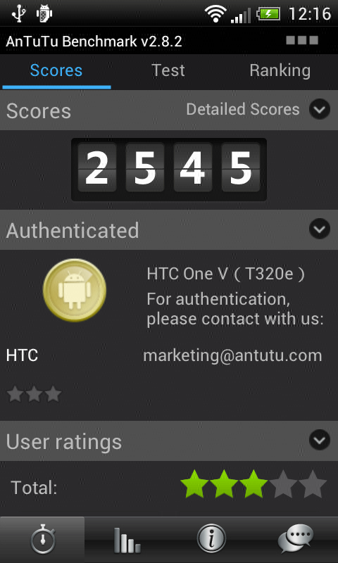 A telefonon az Android 4.0.3-as verziója fut, amelyre a gyártó természetesen ráhúzta a Sense 4.0-t is. A felület sajnos csak elvileg teljesen ugyanaz, mint ami a One X-be és a One S-be került, a HTC ugyanis több apróbb módosítást is eszközölt – ezek csökkentik a funkcionalitást vagy a látványt vagy mindkettőt. A dolog okára egyébként nem volt nehéz rájönnünk; bár a Sense 4.0-ban kevés a látványeffekt, a One V hardvere ezek tökéletes futtatására sem alkalmas. Már a menüben mászkálva is érezni lehet, hogy az UI lomhább, mint a One S vagy a One X esetében – viszont összességében azért nem rossz a tempó, aki csak a V-t fogja kézbe, annak nem biztos, hogy eszébe jut majd, mehetne minden egy kicsit gördülékenyebben is.