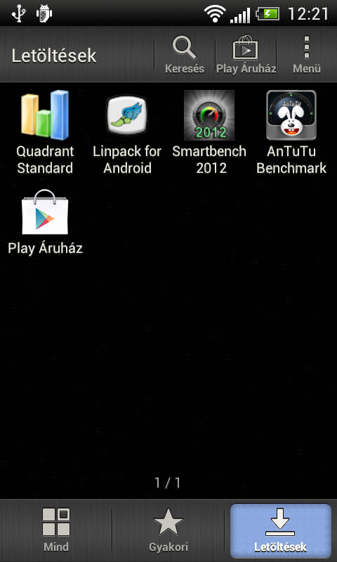 Az alkalmazások gyűjteményét a kijelző felbontásához igazodva a Sense 4×4-es elrendezésben tartalmazza. A listát nem görgetni lehet, hanem lapozni (oldalra). A szokásos csoportosítás mellett kérhetjük, hogy a telefon a használat gyakorisága szerint rendezze az ikonokat, illetve azt is, hogy csak azokat az alkalmazásokat mutassa, amelyeket a Play Store-ból töltöttünk le. Az alkalmazások közötti váltásra szolgáló képernyő a gyári Androiod 4.0 felület, így az appokat előnézeti képpel, egymás alatt sorakoztatja fel.