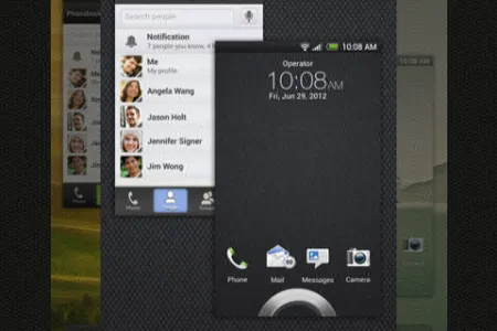 A One X-hez és a One S-hez képest megváltozott a feladatváltó képernyő, a One V esetében 3D effektek nélkül válthatunk az appok között. Kevesebb a gadget is (46); a repertoár részben azért szűkült, mert egyes widgeteket egyszerűen kihagyott a HTC, míg másoknál (pl. a híres-neves óra esetében) kevesebb külső közül választhatunk. A legfájóbb módosítás mégis az, hogy kezdőképernyőből hét helyett csak öt áll rendelkezésre.
