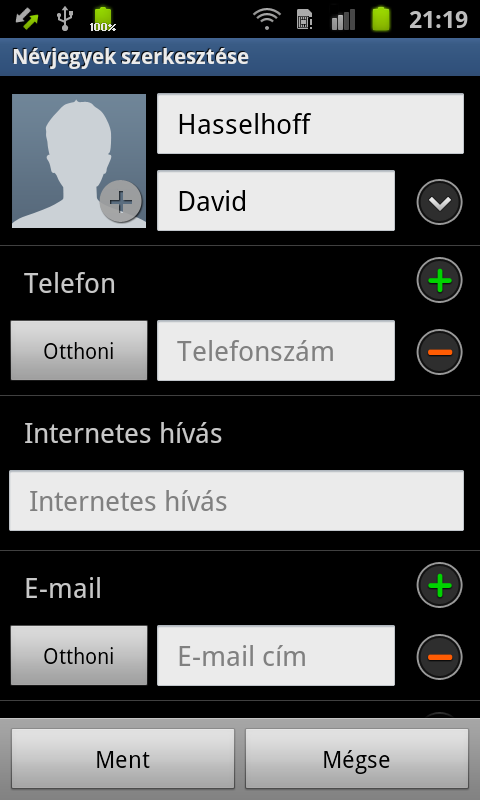 Bár okostelefonról van szó, ne feledjük, hogy a mai mobilokkal még telefonálni és SMS-t küldeni is lehet. A Samsung Galaxy S Advance-nak ezek a feladatok nyilván nem okoznak problémát, és nem volt gond a beszéd minőségével valamint a hangszóró hangerejével sem. A Samsung egyedi megoldása, hogy a tárcsázáshoz használatos billentyűzet, a hívásnaplók, a névjegyek és a kedvencek egy alkalmazáson belül kaptak helyet; közöttük a felső fülek segítségével tudunk váltani. Ez a fajta csoportosítás azért tetszik nekünk, mert sokkal gyorsabban tudunk váltani az információk között – bár tény, hogy erre azért a gyakorlatban nem sokszor lesz szükségünk. A névjegyek természetesen több telefonszám tárolására alkalmasak, de ezen kívül is megadhatunk több más infót (például e-mail cím, csoportok, külön csengőhang, cím, születésnap, stb.), és természetesen arra is mód van, hogy a névjegyeket összekössük Facebook, Twitter vagy más közösségi oldalon lévő felhasználói fiókunkkal. Ennek előnye, hogy a weben frissülő adatok azonnal a telefonban is frissítésre kerülnek.